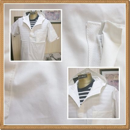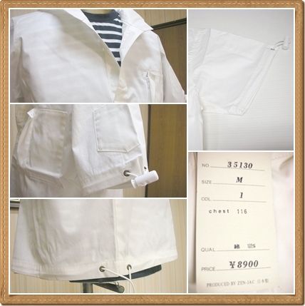ジャンク市★純綿パールホワイト半袖パーカードかぶりブルゾン -M(日本製)