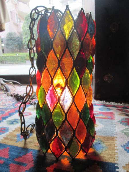 希少品!アメリカンアンティーク 50’s~60’s 樹脂多彩色の吊り下げランプ USA Antique照明 /40's古道具カリフォルニアインテリア家具