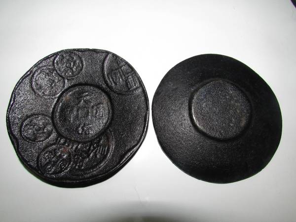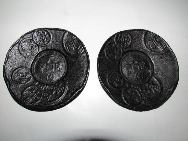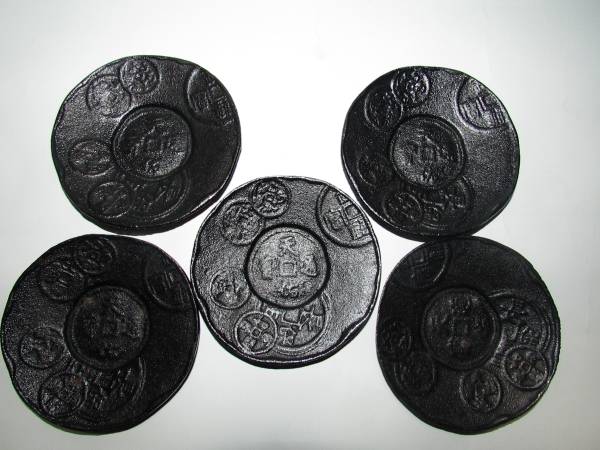 (レトロな味のある鉄製古銭模様茶托・5客)