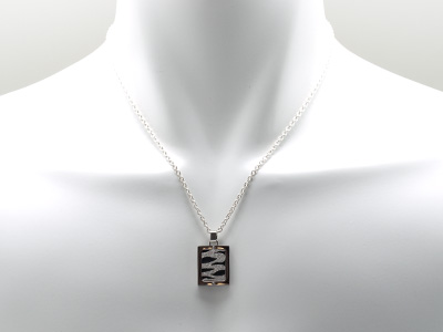 ステンレスネックレス ゼブラ柄彫刻&キュービックジルコニア
