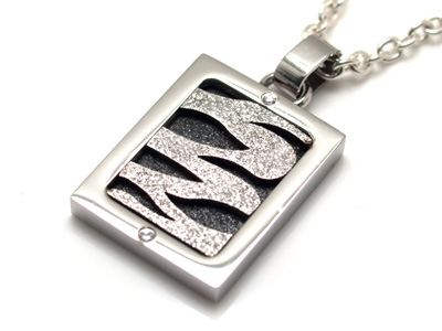 ★人気★お勧め★手入れ不要★肌に優しい★金属アレルギー&温泉&海水浴ご使用OK★ステンレスペンダント★ゼブラ虎柄プレート&ジルコニア