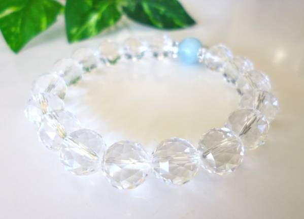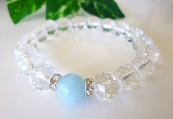 ★驚異の輝き★プレミアムダイアモンドクリスタル★愛と平和の石★ミルキーアクアマリン♪ ☆10mm☆ ☆15.5cm☆