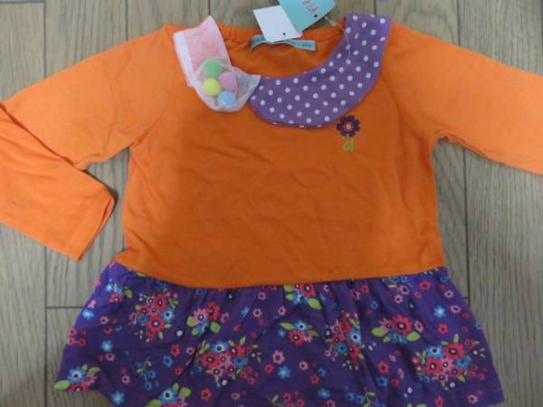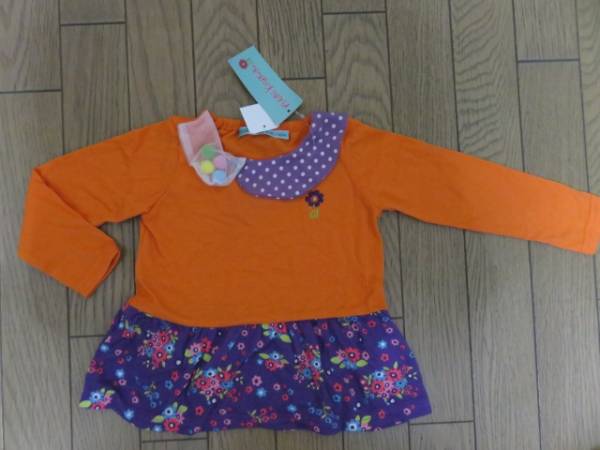 【新品】pieni kukk花柄長袖Tシャツ 95 橙紫