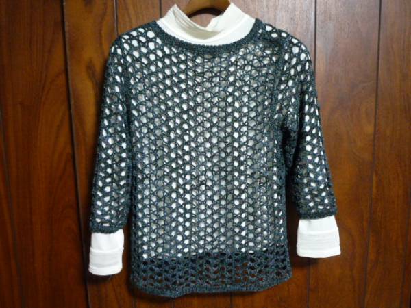 手編み 七分セーター ニット ハンドメイド ラメ入り