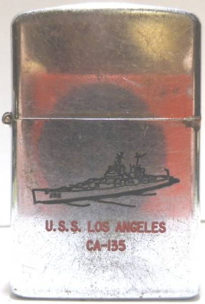USAのメーカー「COMMERCIAL PRODUCTS CO.」のZIPPO TYPEのライターです。ライターは国内メ-カーの委託品です。表面にアメリカ海軍の巡洋艦『U.S.S LOS ANGELES CA-135』の彫り込みペイント(ペイント99%)。ロサンゼルス(USS Los Angeles, CA-135)は、アメリカ海軍の重巡洋艦。ボルチモア級重巡洋艦の13番艦。艦名はカリフォルニア州ロサンゼルスに因む。その名を持つ艦としては3隻目。1944年進水、第7艦隊に所属し中国沿岸、西太平洋、マリアナ諸島海域で活動し、朝鮮戦争、金門橋事件などに参加した。到着後直ぐにご使用できます。オイルは用意してくださいね。中古品ですので、ノークレーム、ノーリターンでお願いします。貴方のコレクションにどうぞ!落札価格に送料がかかります。 貴方のコレクションにどうぞ!