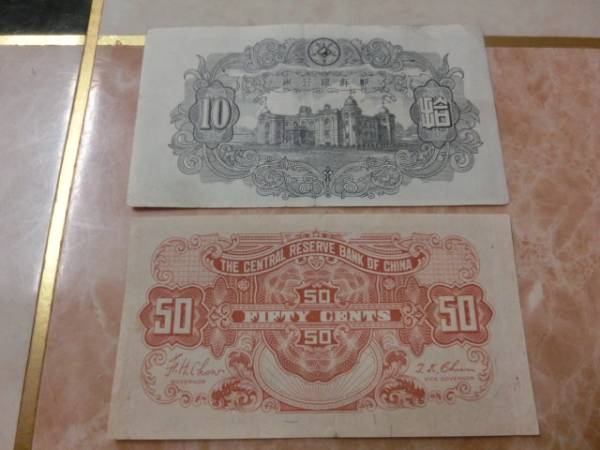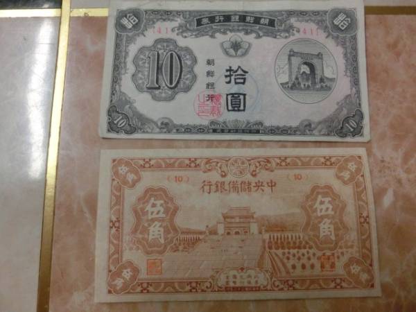 朝鮮銀行券 拾圓・中央儲備銀行 伍角の2枚セットです。