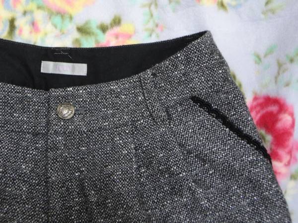 LYONで購入したツイードのショートパンツ、サイズ36(S)です。素材は毛49%、ポリエステル27%、アクリル16%、ナイロン6%、キュプラ2%になります。数回着用致しました。USEDであることをご了承下さい。
