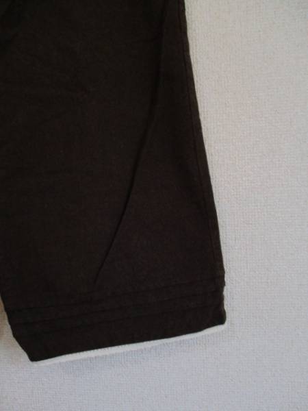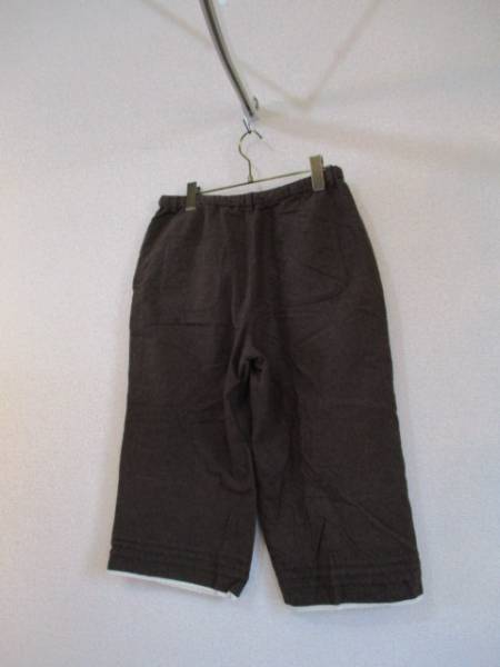 | 商品紹介 | こげ茶の半端丈ワイドパンツです。 裾のレースと横に入った3本のタックがポイントになっています。 コットン素材ですが、少し厚手で起毛したネルのような素材です。 《素材》 本体・レース部分:綿100% |