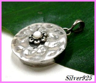 シルバー925銀の天然石ムーンストーン付エンボス サークル ペンダント