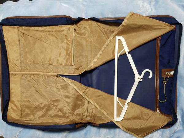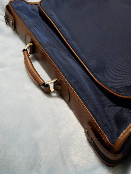 momoyaのスーツバッグの中古です。通常のサイズは、横54cm、縦42cm、厚さ3~10cmで、広げた時のサイズは、全長88cmです。外観は濃い青色で格子柄、持ち手、外周などのアクセントは茶色、防水仕様で、ハンガー付きです。お支払いは、Yahoo簡単決済です。 中古品であることを ご理解の上、ノークレーム、ノーリターンでお願いします。 発送は、ゆうパック100です。他にも、色々出品していますので、ご覧下さい。