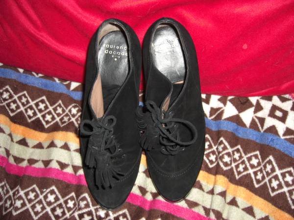 ゆうパック送料込み!ローレンスディケイドのレースアップシューズです。もちろんイタリア製。こちらは2年ほど前のもので、以前国内セレクトショップにて購入しました。価格は約5万円ほどでした。とっても安定感があり、スカートやパンツ、ボトムやスタイルを選ばずに履ける靴です。レースアップですので、紐の締め具合でサイズ調整ができますので、22~23センチの方まで大丈夫です!こちらはスエード素材の黒。サイズは36ハーフですが小さめです。23センチの方でしたらストッキングで。タイツや靴下はきついかもしれません。ヒールの高さ12.5センチですが、前も高さがありますので安定感はあります。とにかくカジュアルにもスーツにもワンピースにも合う優れもの!形は本当に美しいです。状態ですが、つま先に減りがあり。アウトサイドにダメージあり。リフトに減りがあります。あくまで靴の中古です。数回程度の使用ですが、個人差がありますのでご理解いただける方に。まだまだ気持ち良く履いていただけます。現物のみで、箱や内袋はありません。似たようなものになりますため、お探しの方に今回お譲りすることにしました。必ず最後まで説明文はお読みください。(高額商品ですので、24時間以内にご連絡いただける方で3日以内のお振込可能な方でお願いします。かんたん決済ご利用の場合、着金確認後の発送となります)。(その他追加画像が見られたい方は質問欄よりご依頼ください。素人確認ですので極々わずかな見落とし等があるかも知れません。当方が信用できない方は絶対に入札しないでください。以前大変不快&不可解なことがありましため、スムーズにお取引できる方のみお願いします!入札後のご質問はないようにお願いします。ご入札後のご質問には一切お答えいたしません。また入札後の値引き交渉は一切いたしません。間違いなく本物でございます。ご不安な場合は入札をお薦めいたしません。)発送はゆうパックで、当方負担になります。お探しの方へ!見たい部分等の画像が必要な際&質問は前もってお知らせください。手に入れ られなかった 方にぜひ♪最高に素敵ですよ~♪ノークレーム&ノーキャンセルで!よろしくお願いします!! (他にもアドーア、GREEN、クロエ、J&Mデヴィットソン、バレンシアガ、マルニ、セリーヌ、エルメス多数出品中!)*高額ですので、必ず質問は入札前にお願いします。当方が信用できない方は絶対に入札しないでください。スムーズにお取引できる方のみお願いします!(入札後のご質問はないようにお願いします。落札後の質問には一切お答えしません。)新規の方につきましては、今まで何度もいたずら被害に遭っておりますため(もちろん新規の方でもきちんとお取引いただけた方もいらっしゃいましたが)、高額ですので、24時間以内のご連絡&ご入金をお願いいたしております。また、取引連絡でも、当方より「先」にお名前&ご住所等の詳細をいただきますので、お互い気持よく取引できますようご理解をお願いします。&nbsp;<DIV STYLE=><DIV STYLE=>*記載にありますが、「高額商品ですので、24時間以内にご連絡いただける方で3日以内のお振込可能な方でお願いします。」。お約束をお守りいただけない方のご入札はお控えください。お約束いただけなかった場合は取消処理をさせていただきますのでご了承ください。よろしくお願いします。</DIV><DIV STYLE=>*マイナス評価が多いと判断される方は取消処理をさせていただきます。ご理解をお願いいたします。