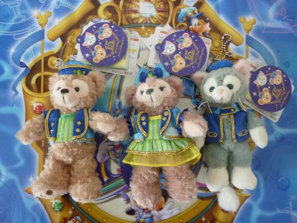 即決♪新品未使用♪東京ディズニーシー 15周年記念 2016 ダッフィー シェリーメイ ジェラトーニ ぬいぐるみバッジ ぬいば キーチェーン♪TDR TDL TDS♪