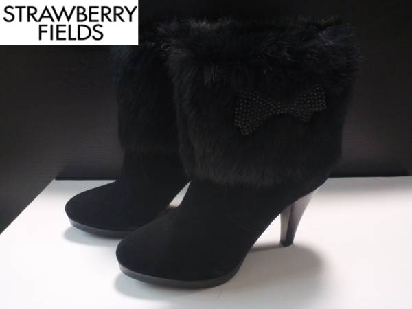 3万 ストロベリーフィールズ 本革 スウェード ラビットファー ブーツ 22.5