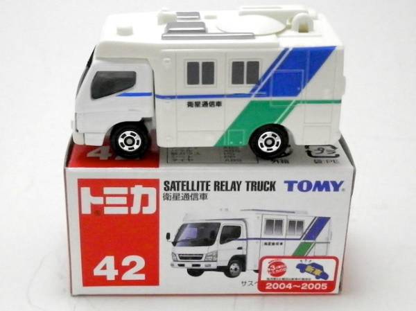 トミカ No.42 衛星通信車 塗装の不出来やタンポの欠けなど製造上の個体差・経年劣化の為シール・箱(シワ・ヤケ・凹み等)の擦り傷等の傷みなどがありますので予めご了承下さい。 写真では分りづらいキズ等がある場合もあります。 ご理解の程宜しくお願い致します。 | |||