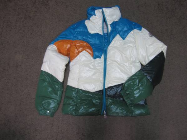 数回着用 モンクレールダウンジャケットです。レディース1サイズです。実寸は、肩幅40、身幅46、着丈60、脇下袖丈48.5CMです。よく見ると山などがデザインされたモデルです!!ヨーロッパに行った際に、パリのデパート「ラファイエット」のモンクレールコーナーで購入しました。日本では見かけたことのないモデルです!!探していた方、この機会にいかがですか?