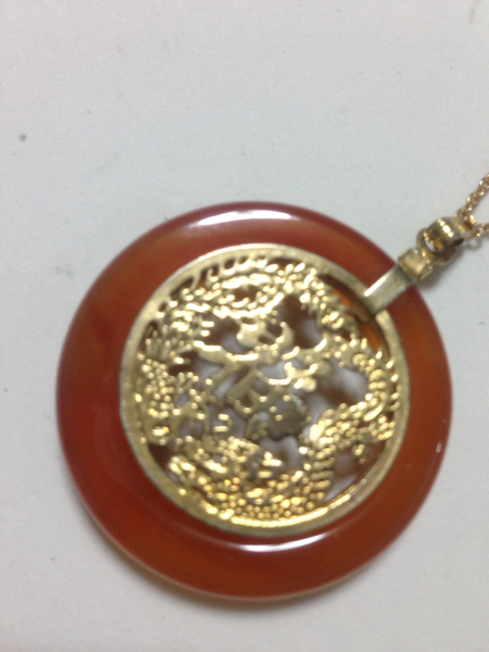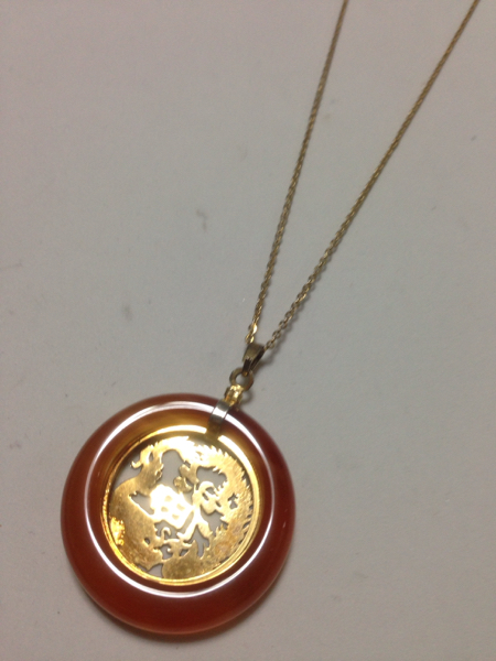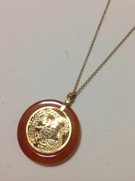 瑪瑙と龍の模様の金工、透かし彫り、ペンダントネックレスです、トップのサイズは直径35ミリ、チェーンの長さは41センチです