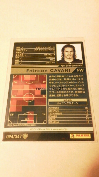 ☆WCCF2015-2016☆15-16☆094☆黒☆エディンソン・カバーニ☆パリ・サンジェルマンFC☆Edinson Cavani☆Paris Saint-Germain FC☆