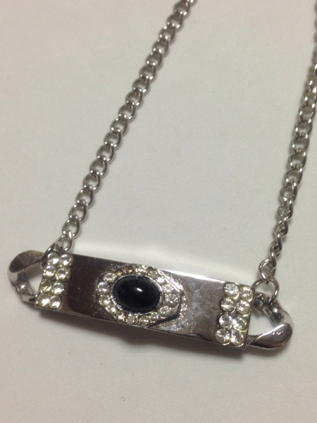 オニキスとジルコニアのネックレスです、珍しいデザインのチョーカーです、トップのサイズは10×50ミリです★ 送料は120です