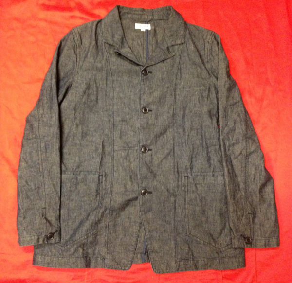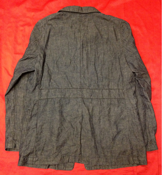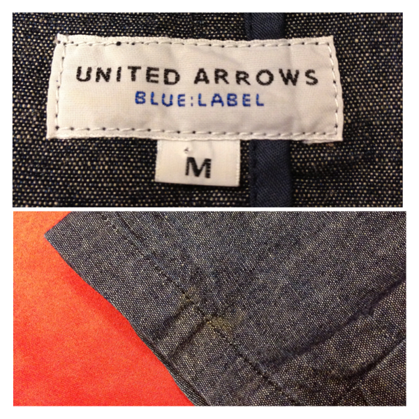 状態は古着になります。全体に少しシワと右袖口に薄いシミがあります。シャンブレー素材ですので、シミはさほど目立ちません。