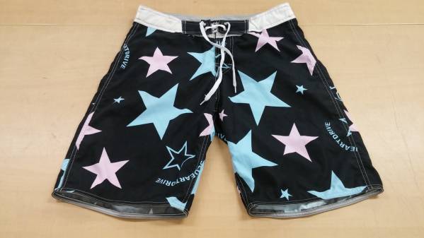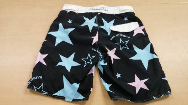 ブルーアートドライブのサーフパンツMサイズです。表記サイズ76~84、丈約515ミリ位です。ウエスト部はマジックテープでサイズ調製可能です。1回使用しております。星柄はピンクと水色になります。