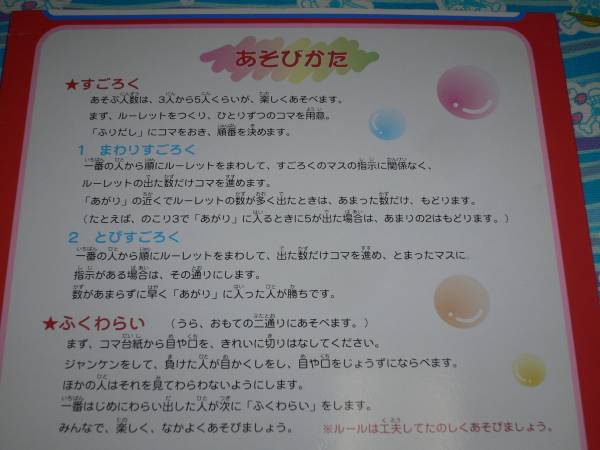 2003年ショウワノートより発売された「仮面ライダー555 すごろく ふくわらい」中袋未開封の未使用品です。外袋の持ち手の部分にやぶれがあり、切り取っています。その他、外装袋にスレ・キズ等のいたみも見られます。封筒に直接入れての発送となり、送料は定型外郵便で320円です。その他「自己紹介欄も確認ねがいます」。以上の事をふまえて入札お願いします。