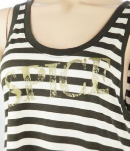 アームホール広めのゆったり感が今っぽい、ストリート系コーデの基本アイテム。インナーはマストなので、個性的なレイヤードを楽しみたい。一見かすれた感じのロゴプリントは、繊細なレース柄です。太ももにかかるくらいのチュニック丈。