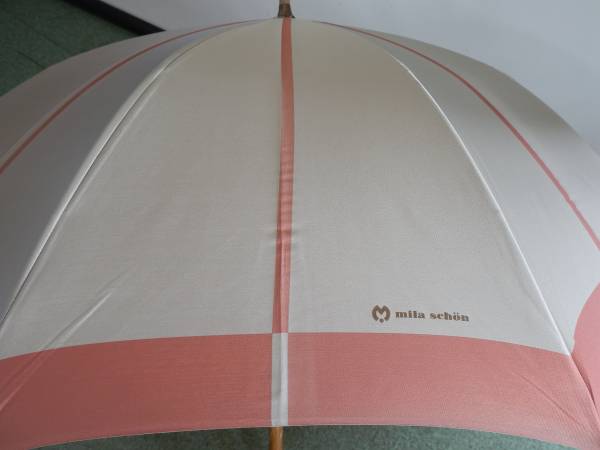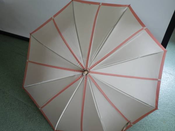 ☆光沢のあるベージュがベースのカラーにサーモンピンクがさし色になって、シックで落ち着きのある感じがお洒落で素敵なデザインです。持ち手の部分は木目調でお洒落です。