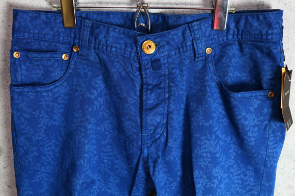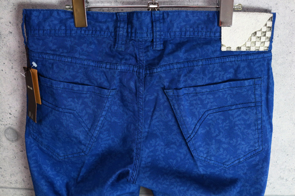 またゴールドカラーの釦フライを採用しバックパッチにはハラコレザーを施したこだわりのアイテムです。