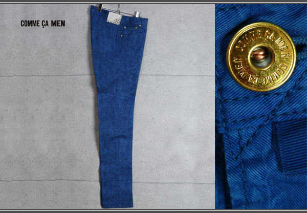 新品コムサメン 濃淡ストレッチコットンチノスラックスS青2.4万