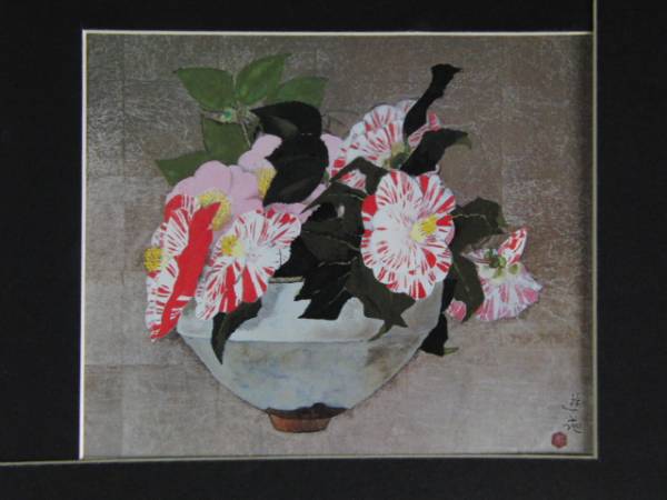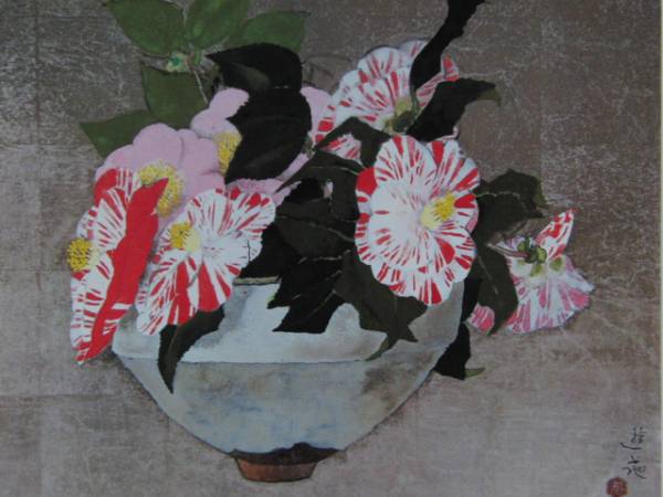 小倉 遊亀、椿など、希少画集画より、新品高級額装付 状態良好