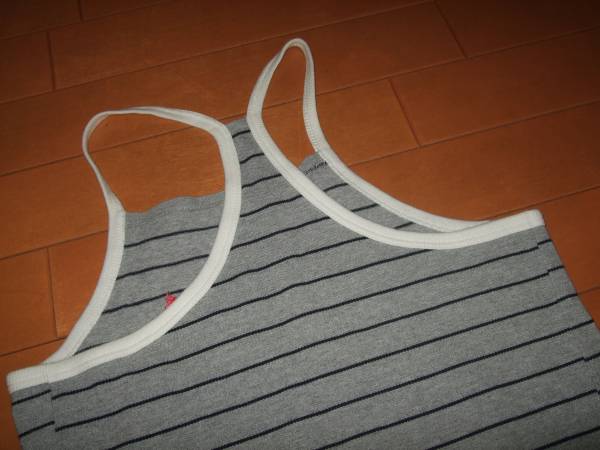 良品、ジムフレックスの鹿の子素材のワンポイント刺繍入りキャミソール、バックの形などが可愛くておすすめです。鹿の子素材もスポーツテイストで素敵です。お色はグレーになります。ユーズドですが、そこまで頻繁に着ておらず、普通に外で着ていただけますし、ユーズド感も、多少というのはありますが、良好です。身幅約39、丈は肩より約57です。ぜひご検討ください。