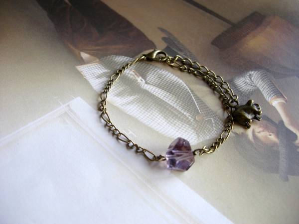 シベールの宝石箱・・シリーズです♪神秘的なアメジストのブレスレットです♪透明度の高いラフ・カットのアメジストは可 憐な表情と存在感を併せ持つ魅力があります♪ブレスレットは11×9ミリ位のラフカットのアメジストです♪長さは 全長22センチ位で調節自由です♪お揃いのネックレスやピアスも出品しています♪シンプ ルで飽きのこないいつまでも着けられるデザインを考えて作りました!ハンドメイドをご理解頂いてノークレーム、ノーリターンでお願いします