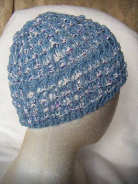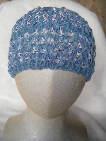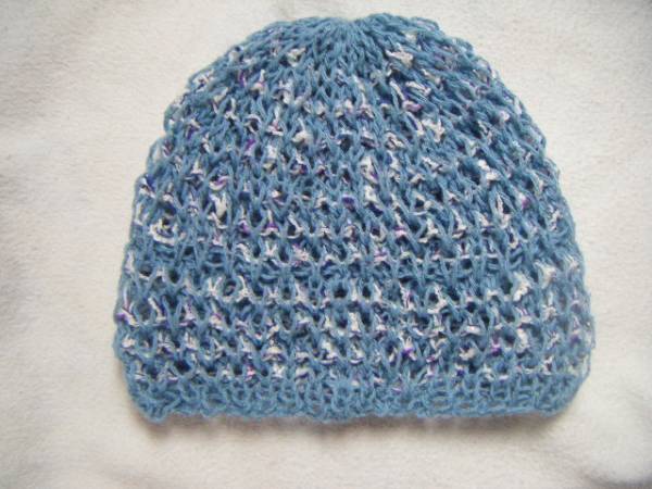 春~秋*手編キャップ*薄青(水色)、白、マルチ色   47