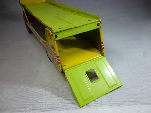 【商品説明】 昭和初期に製造された、日本製のブリキのトラックです。 経年の劣化などございますが、比較的程度の良い商品です。 画像でご判断いただき、現状でお願いいたします。 【大きさ】 本体・・・全長約39cm 横幅約8.8cm 高さ約12.3cm ---------------------------------------------------------------------------- →珍品、レアな商品、なつかしい貴重な懐古品を中心に出品をしております。ぜひ、他の商品もご覧ください。←クリックください。 |