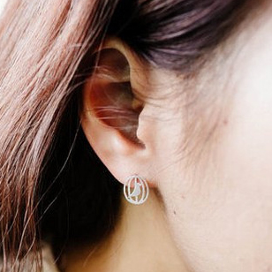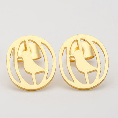 丸いケージに入った小鳥が可愛い真鍮ピアス。