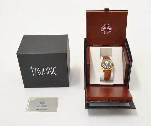 「TAVORIC」のAriRaja。 ・素材:フレーム:ステンレス・スチール、ベルト:カウレザー。 ・カラー:ブラウン×ゴールド。 ・サイズ:腕周り 約145~190mm。 国内のドメスティックブランドとして今、注目を浴びる新鋭ブランドの「TAVORIC(タボリック)」の海賊旗をモチーフにしたデザインの腕時計「AriRaja」。 文字盤中央にはドクロを配置し、骨に見立てた長針・短針、秒針は血の塗られたカラスト剣をイメージしております。 そして10時10分になると、骨に見立てた長針・短針がクロスボーンの様になり「海賊旗」をイメージさせる、個性的で遊び心のある腕時計です。 個性的なデザインの文字盤とは逆にオイスターケースを採用して落ち着いた雰囲気のデザインとなります。 自動巻き、日常生活防水、ハック機能、デイトジャスト機能。 ケース、ギャランティーカードあり。定価¥29400。 保管のみの新品同様ですが、箱やケースにダメージが見られます。通常の使用に問題はございません。長期保管品 かなりお値打ちだと思います。この機会にぜひ!(NCNR)。 他にもいろいろ出品しています。 管理番号:221409MY-068317 PD062402-500 |