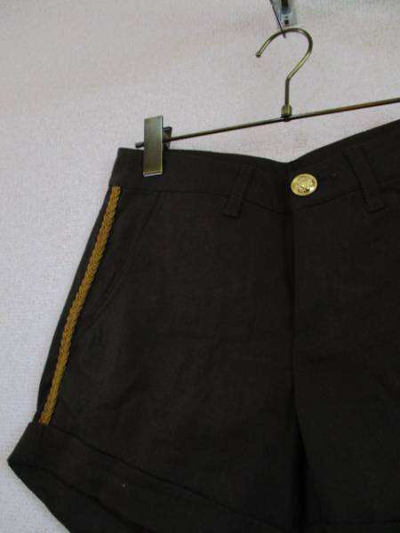 | 商品紹介 | 両サイドに付いた3つ編みのようなラインがポイントになったショートパンツです。 ウエストと後ろ右ポケットには紋章入りのゴールドのボタンが付いています。 色はカーキで、裾は1つ折りの形です。 《素材》 ポリエステル65% レーヨン35% |