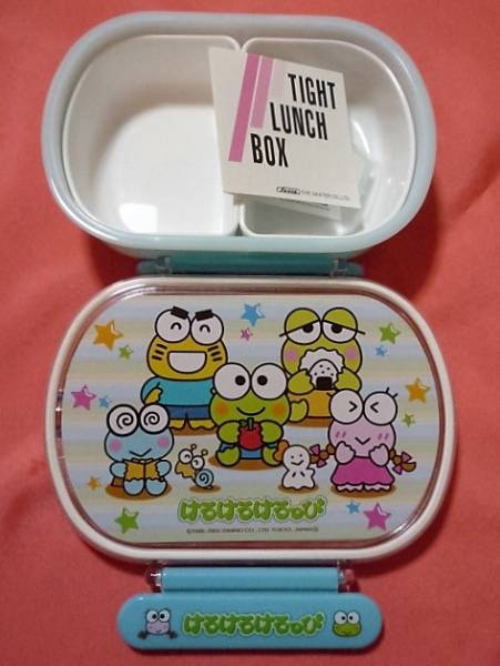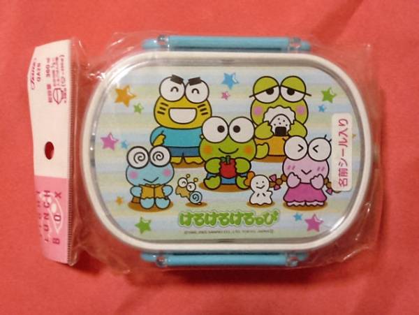 ☆商品説明☆ご覧いただきありがとうございます^^ サンリオキャラクター けろけろけろっぴのお弁当箱です!2005年 日本製。レトロなけろけろけろっぴキャラクターの絵柄でと~ってもかわいいですよ^^大きさはタテ 約11.5cm、ヨコ 約14.5cm、高さ 約5cmです。たいへん古いものですがコレクション用として袋に入れたまま大切に保管していましたので新品、未使用でたいへん綺麗な状態だと思いますが、家庭での保管ですのでご理解いただける方のご入札をお願い致します。☆発送方法☆ 定形外郵便、ゆうぱっく ☆コメント☆ ノークレーム、ノーリターンでお願いします。ご不明な点がございましたらお気軽にお問合わせ下さい。他にもけろけろけろっぴグッズたくさん出品しております☆ 良かったらご覧下さいね*^^*