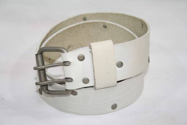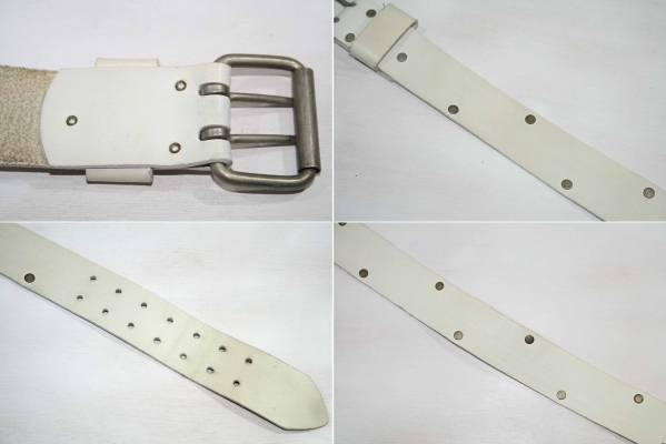 商品 70年代頃 レザー スタッズ ダブルピン ベルト 白色