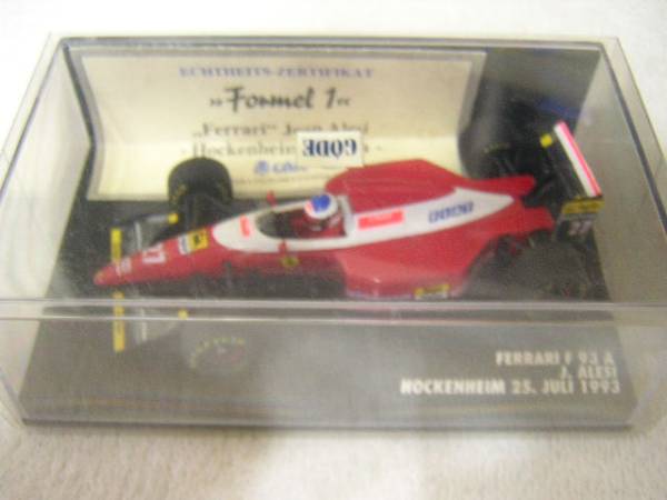 GODEモデル、1993年7月25日ホッケンハイム仕様のフェラーリF93A、J・アレジのモデルカーです。ケースに一か所ヒビが入っておりますが、本体は美品です。ミニカーは大量生産品のため、デカール等個体差が生じてしまうことをご理解のうえ入札願います。完全品をご希望の方は、入札をご遠慮ください。ゆうパックにて発送します。東京都内700円、東北・関東(東京都以外)・信越・北陸・東海は760円、近畿は870円、中国・四国は1,030円、北海道・九州は1,290円、沖縄は1,330円となります。まとめて落札いただいた場合は、別途連絡します。