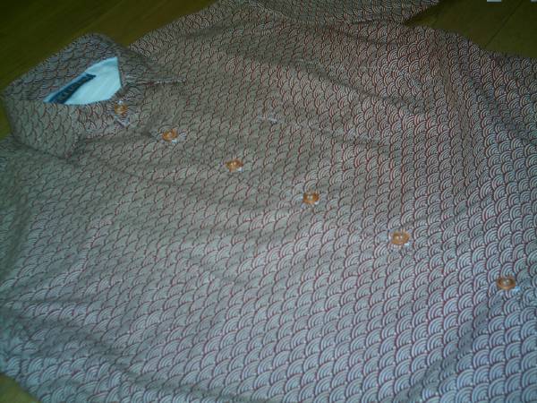 ☆手作り☆ 青海波エンジ半袖シャツ XL 新品 送無料あり