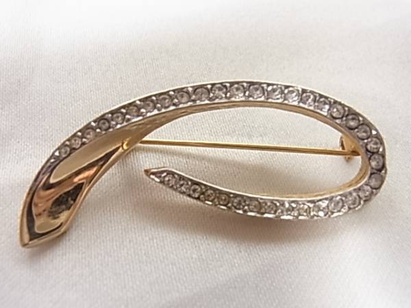 輝くラインストーン付の曲線が美しい形状のブローチ◎