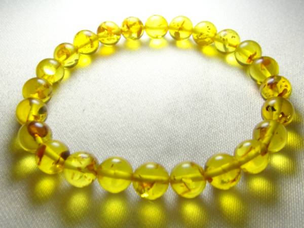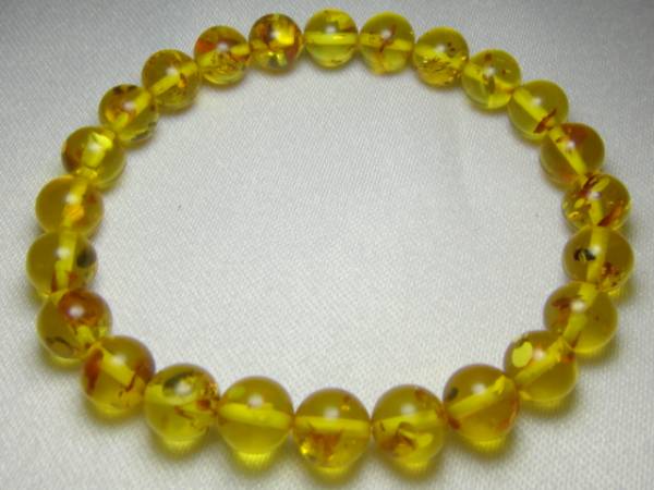 キレイなバルト海産アンバーの約8㎜玉のブレスレットです。
