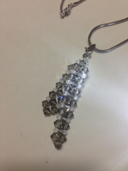 ビーズとスネークチェーンの静かな色合いのネックレスです。トップは60×25ミリ、チェーンの長さは43センチです★ 送料は120です