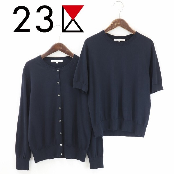 | 【KA331】美品◆23区 コットン ニット 半袖 トップス & カーディガン アンサンブル 紺 ネイビー 44 大きいサイズ | |