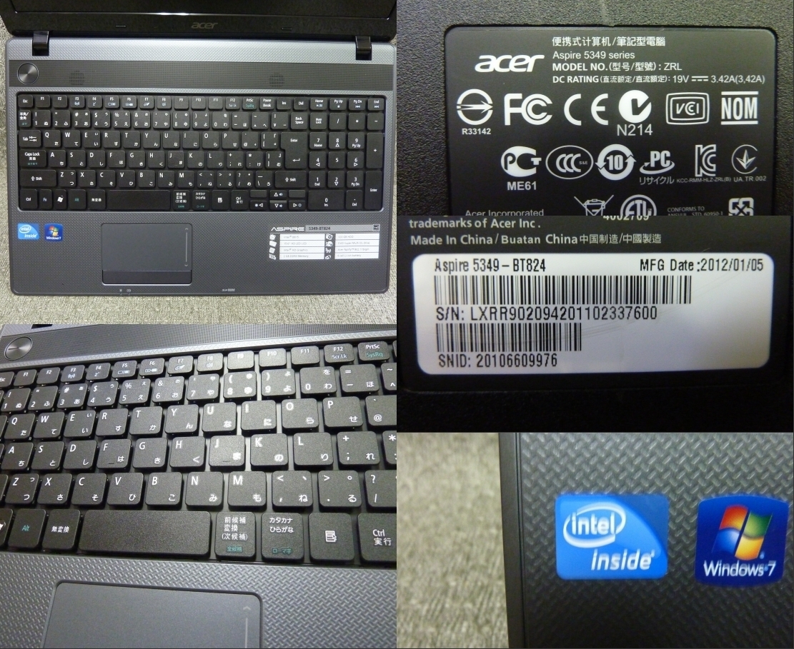 メーカー | Acer Aspire 5349-BT824 (付属品はなし、本体のみです。) 詳細なスペックは画像を確認してください。 |