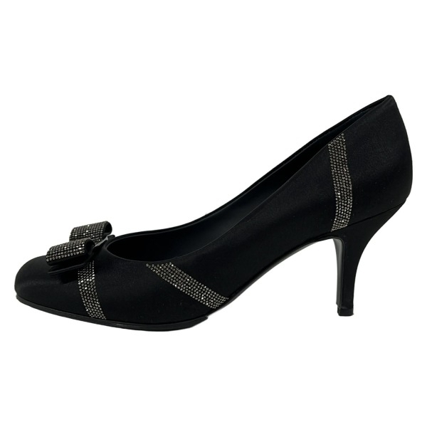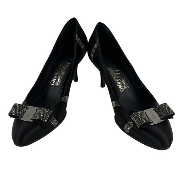 サルバトーレフェラガモ FERRAGAMO/SalvatoreFerragamo パンプス 7 1/2 - 黒 レディース ラインストーン/ヴァラ/アウトソール張替済 靴