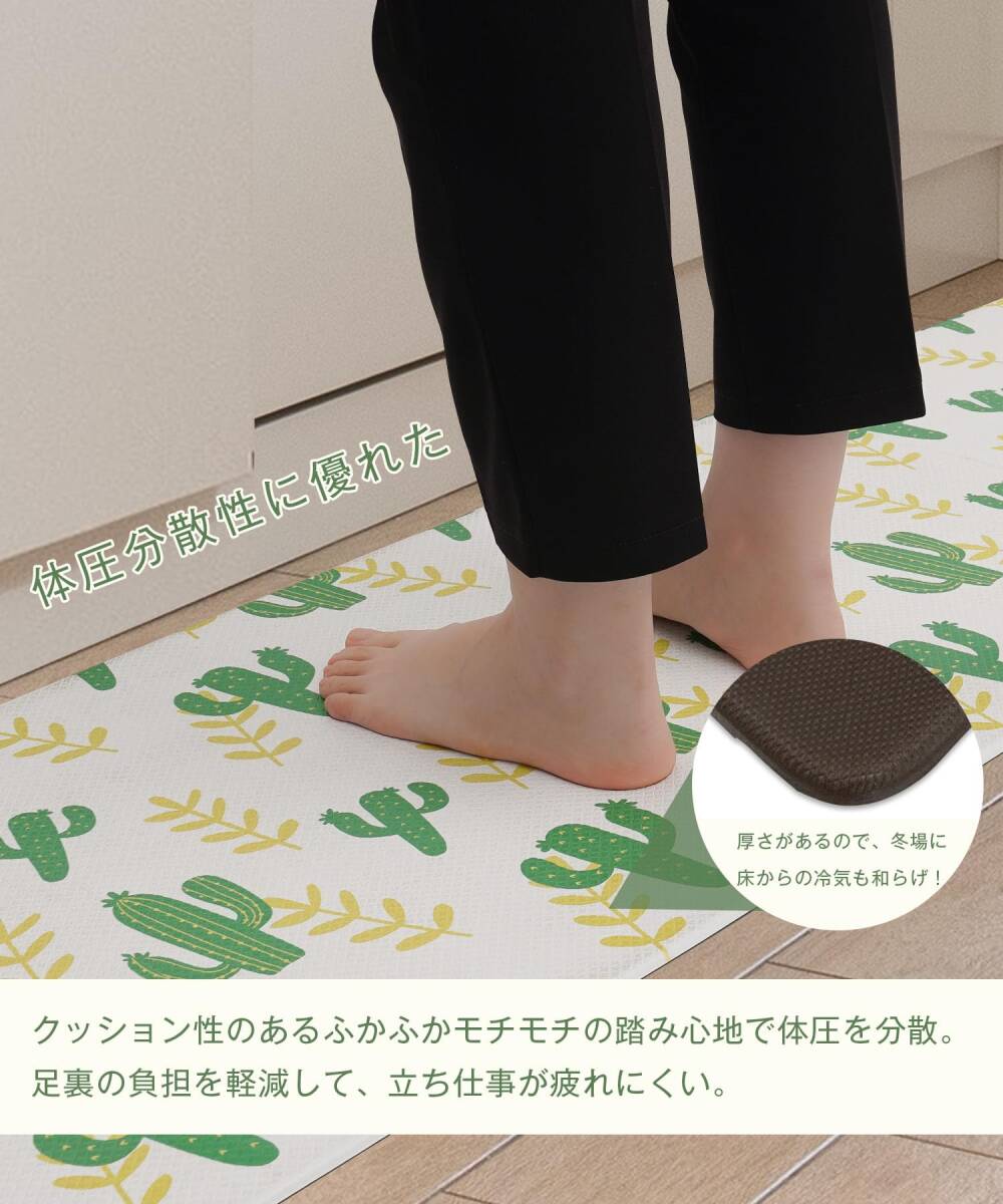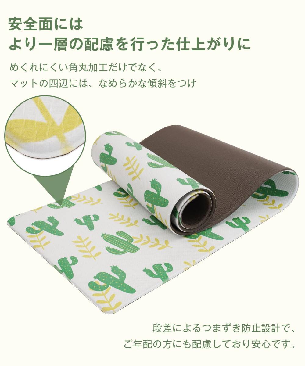 ・「お掃除ラクラク・お洗濯の必要なし」水に強い塩化ビニル素材のキッチンマットで水しぶきや油汚れも、サッと拭き取れます。お洗濯の必要がなく、掃除機をかければゴミも簡単に取れるのでお掃除が楽になり、 ロボット掃除機も対応できますので、キッチンを清潔に保ちやすくなります。