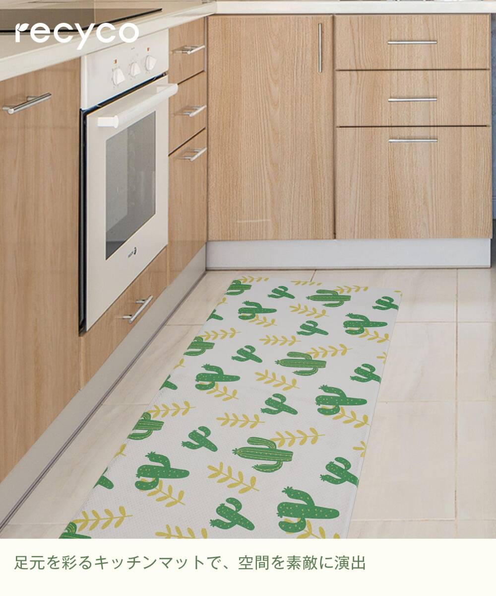 RECYCO キッチンマット 拭ける 洗濯いらず 低反発 クッション 踏み心地いい ポリ塩化ビニール ずれない 台所 マット はっ水 防汚