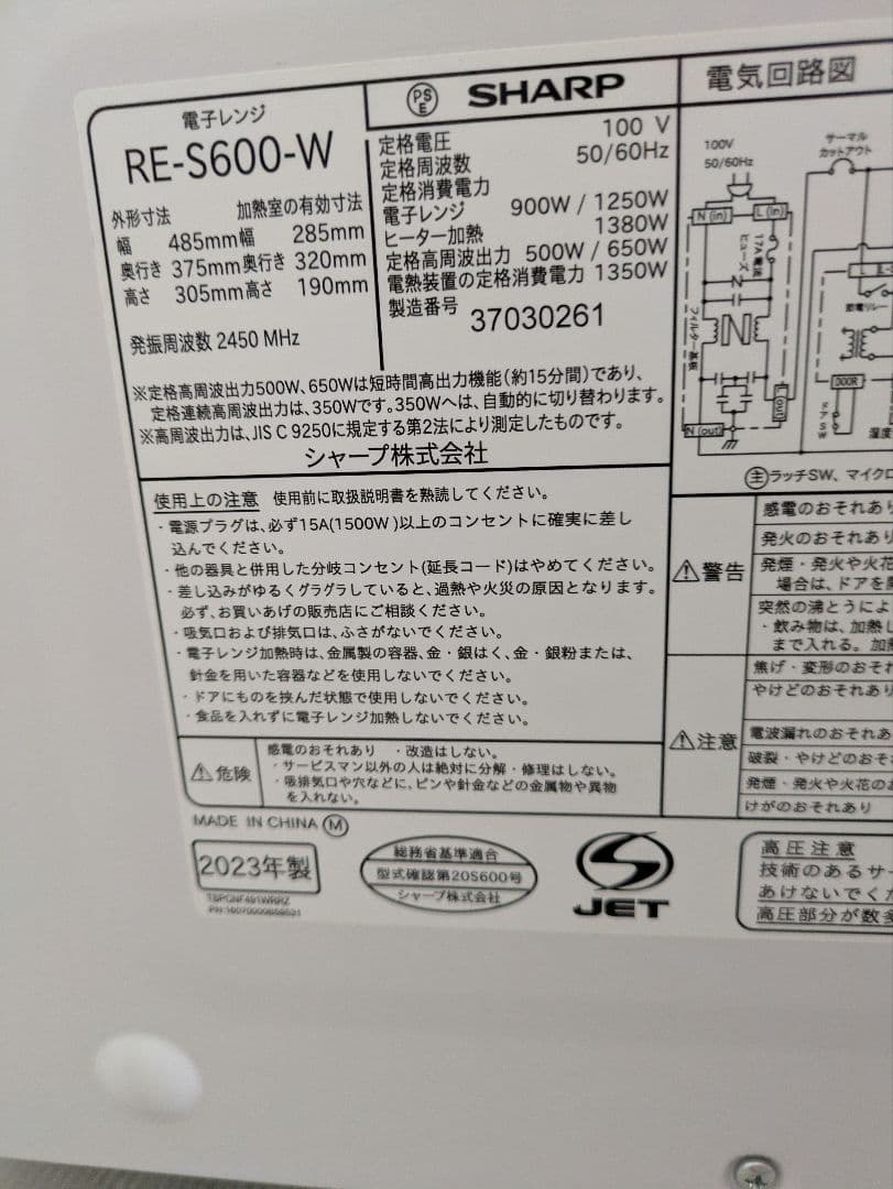 SHARP RE-S600-W 電子レンジ 2023年製